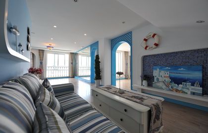 客厅作为待客区域,一般要求简洁明快,同时装修较其它空间要更明快光鲜,通常使用大量的石材和木饰面装饰;美国人喜欢有历史感的东西,这不仅反映在软装摆件上对仿古艺术品的喜爱,同时也反映在装修上对各种仿古墙地砖、石材的偏爱和对各种仿旧工艺的追求上。总体而言,美式田园风格的客厅是宽敞而富有历史气息的。